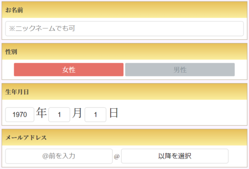 性別、生年月日、名前、メアドを入力して、送信してください。